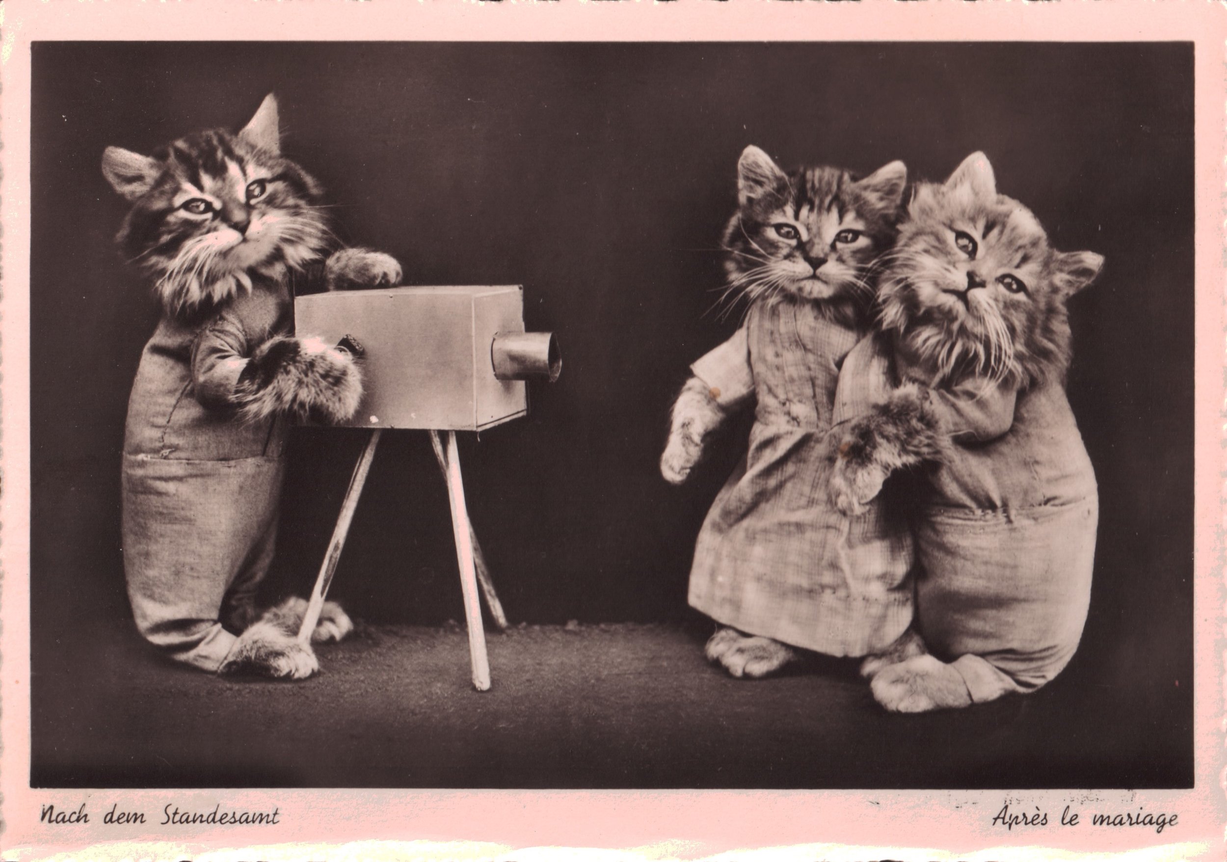 These are the earliest of the dressed cats postcards. It was after seeing one of the school cats postcards that I began collecting. The cards below are grouped by theme.